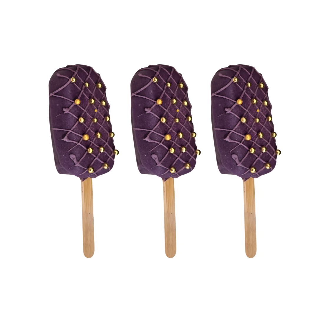 Meet our Purple Elegant CakePOP Stick – where cake meets pure luxury. Each one is coated in a deep purple Callebaut chocolate shell, finished with a fine drizzle and tiny gold pearls for that gorgeous, high-end look. Perfect for grazing tables, birthdays, weddings, corporate events or when you simply want your dessert to steal the spotlight.